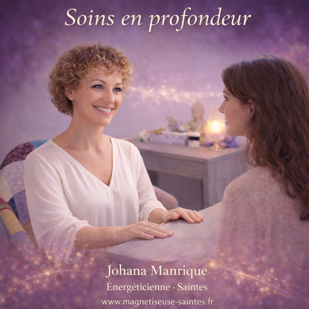 Je propose des soins énergétiques guidés par l’écoute, le ressenti et le dialogue. Mon approche est sensible et intuitive : je prends le temps de cerner la personne, de décoder ce qui se joue en profondeur et de mettre des mots sur les maux, sans forcer. Mon intention est simple : vous aider à vous sentir mieux, à vous apaiser, et à traverser une période difficile avec plus de clarté et de stabilité intérieure. Après un soin, il est fréquent de ressentir un soulagement, un apaisement, ou parfois un besoin de tranquillité, comme si tout avait besoin de se poser. Il peut aussi arriver que l’on se sente un peu brassé(e) : c’est souvent le signe que le soin continue son travail et que des choses se réajustent en profondeur. Je vous invite à vous écouter, à ralentir si possible, et à accueillir ce qui se présente avec douceur.